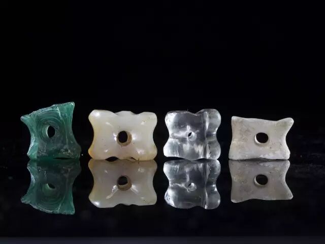 国内几乎所有的史前文明遗迹,从黄河流域的大汶口文化遗址、龙山文化遗址,到长江流域的河姆渡文化遗址、良渚文化遗址,再到三星堆文化遗址,都有用兽骨、玉料、玛瑙、绿松石等各种材质制成的珠子出土。