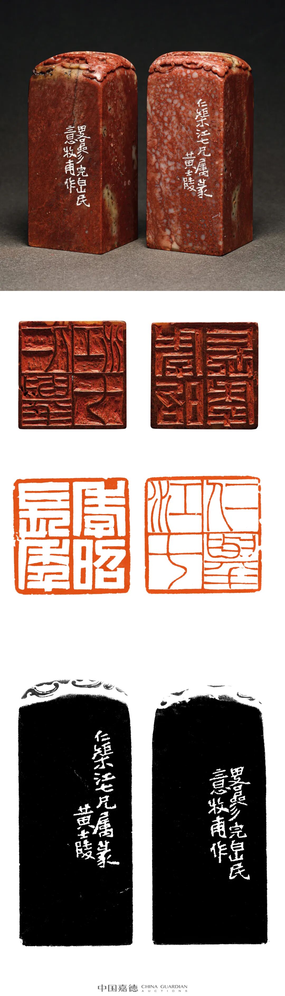 黄士陵刻“仁举江七季昭长年”寿山石博古钮对章