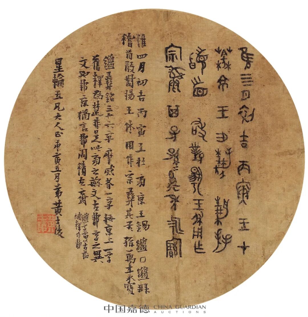 近日得见嘉德拍卖公司汇集黄士陵金石书画作品廿六件,分别为器物博古图五件、书法对联四件、各体篆书四屏、篆书晋葛洪《抱朴子》二屏、斋额横幅一件、临颂鼎横幅一件、扇面书法一件、团扇书法一件、行书信札二幅四件、印章四枚。不仅涵盖了黄士陵各艺术作品类型且多为传世精品。