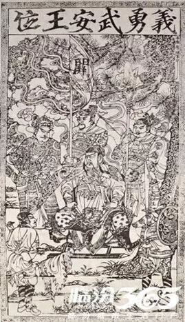 《关羽像》高72.3厘米,宽34.2厘米。关羽处于画面中心,端坐于椅上,双手置于腿上,目光炯炯,美须飘然,神态安详。画面布局丰满,人物细腻生动。画幅周边饰以回纹,上方也有一通栏横披,楷书“义勇武安王位”。画框上有“平阳府徐家印”字样。制作年代,从关羽封号推断,应在公元1123年——1128年之间,即北宋徽宗宣和五年、金太宗天会元年之后的几年内(我去年应山西运城政府之邀去参加其关公文化节,说起这张武安王像,当地竟然都还不知道。对世界关公崇拜之无知,令人惊讶)。