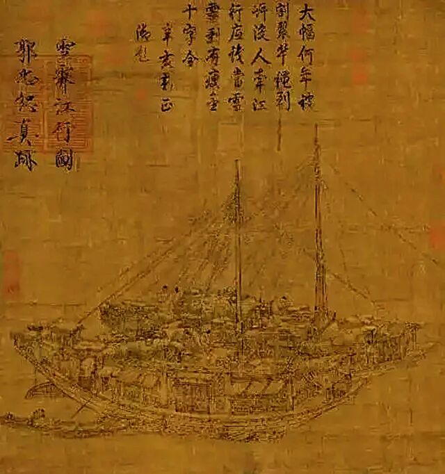 钓艇渔翁,片帆斜挂,独坐披蓑笠。