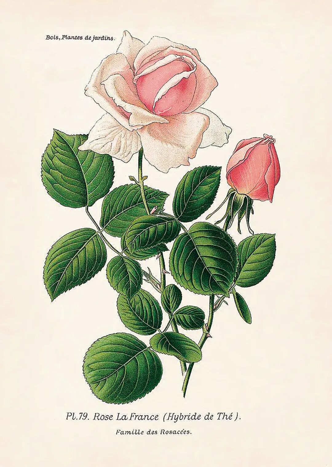 经过园艺师六十余年的不懈研究实践,第一支现代玫瑰就在约瑟芬的玫瑰园中诞生,可惜那时她早已香消玉殒。1867年作为一个分水岭,将古典玫瑰和现代玫瑰从此区分开来,带着月季和玫瑰双重基因的新品种——杂种茶香玫瑰,被命名为“La France”,基本上被认定是现代玫瑰的鼻祖。