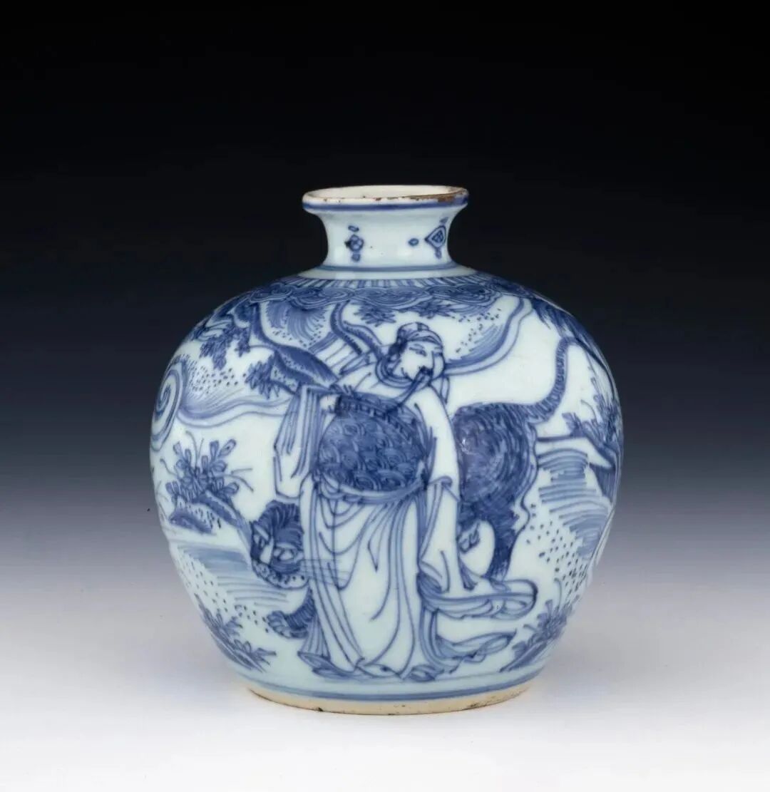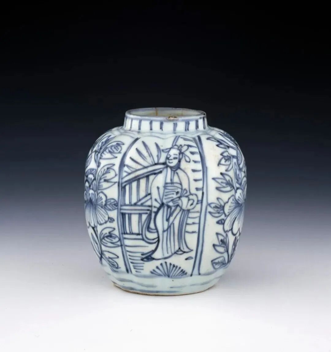 大英博物馆藏明晚期青花铁线描人物图小罐