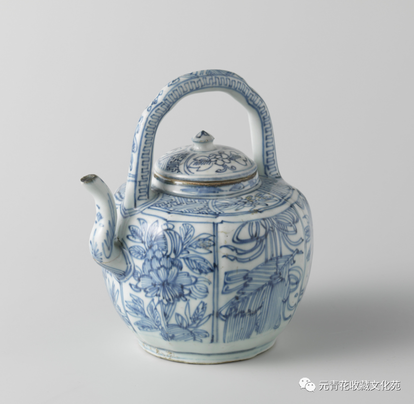 明万历 青花花卉纹瓜棱提梁壶阿姆斯特丹国立博物馆藏