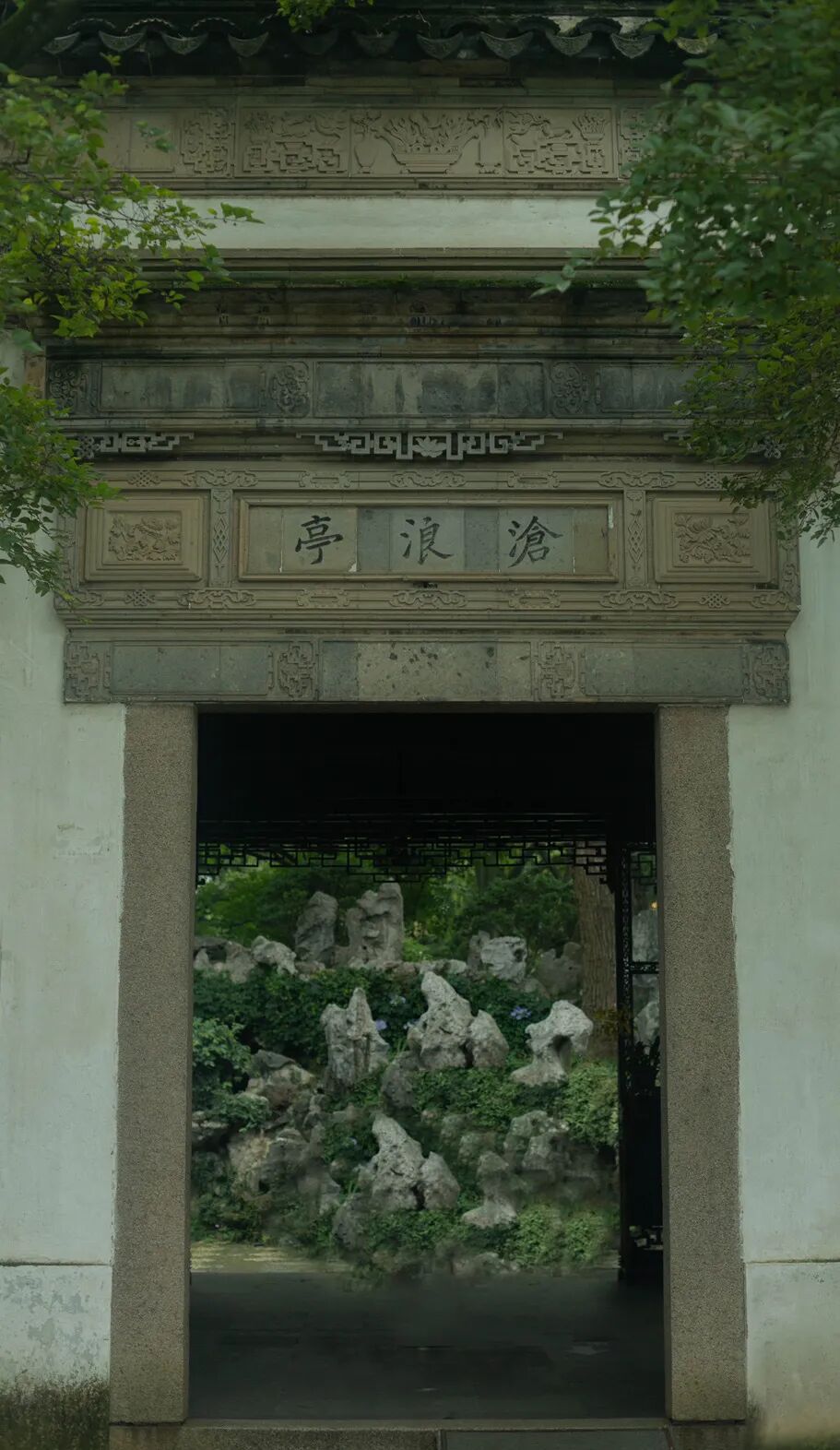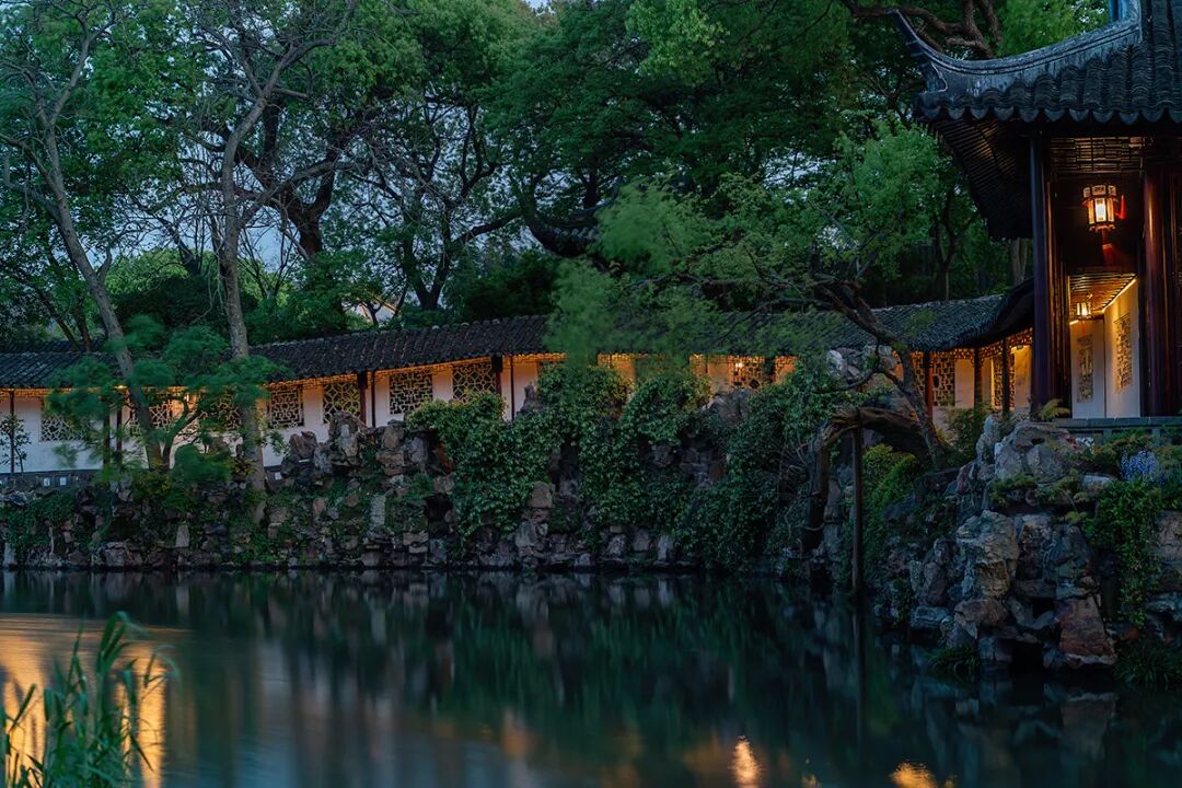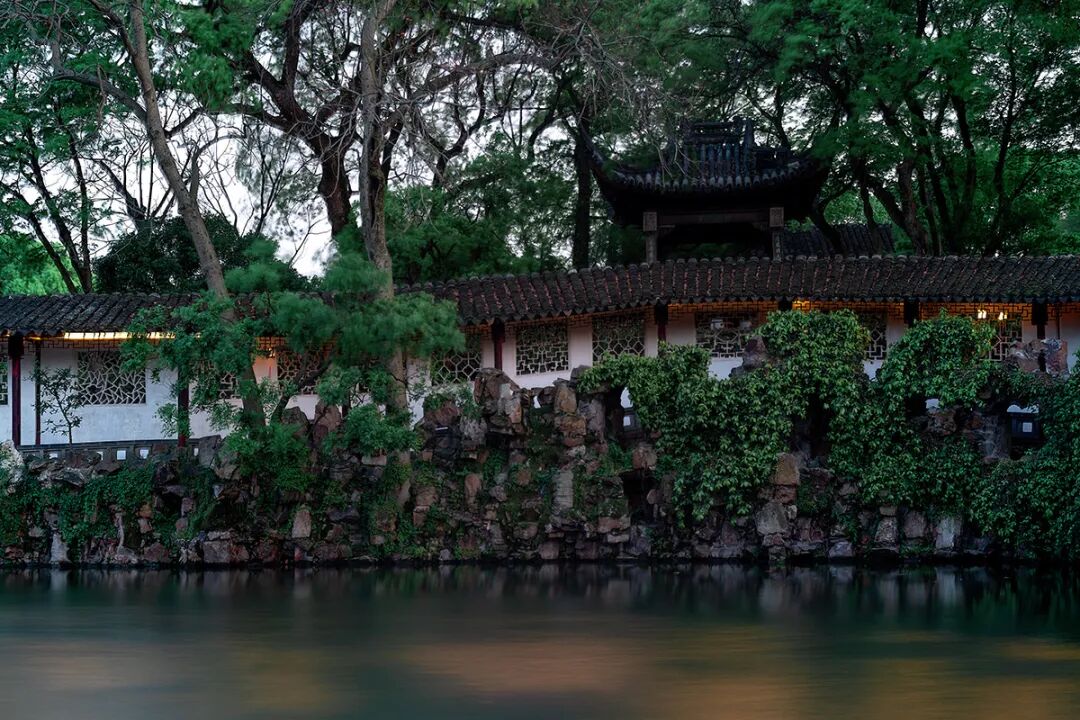 始建于北宋庆历年间的沧浪亭,以一道复廊分隔园子内外,园内木石古亭,园外葑溪萦回,称得上是苏州园林近借的典范。