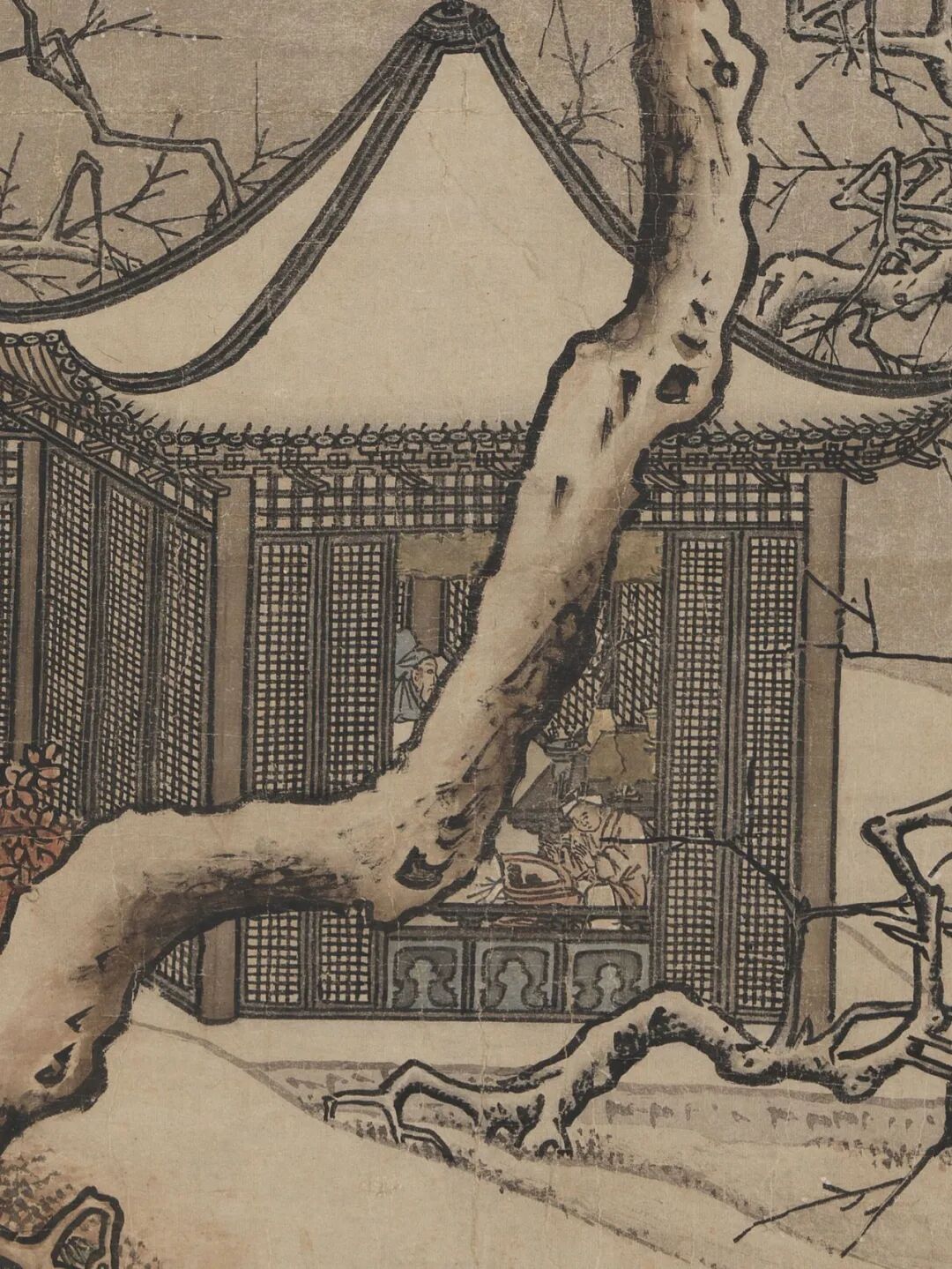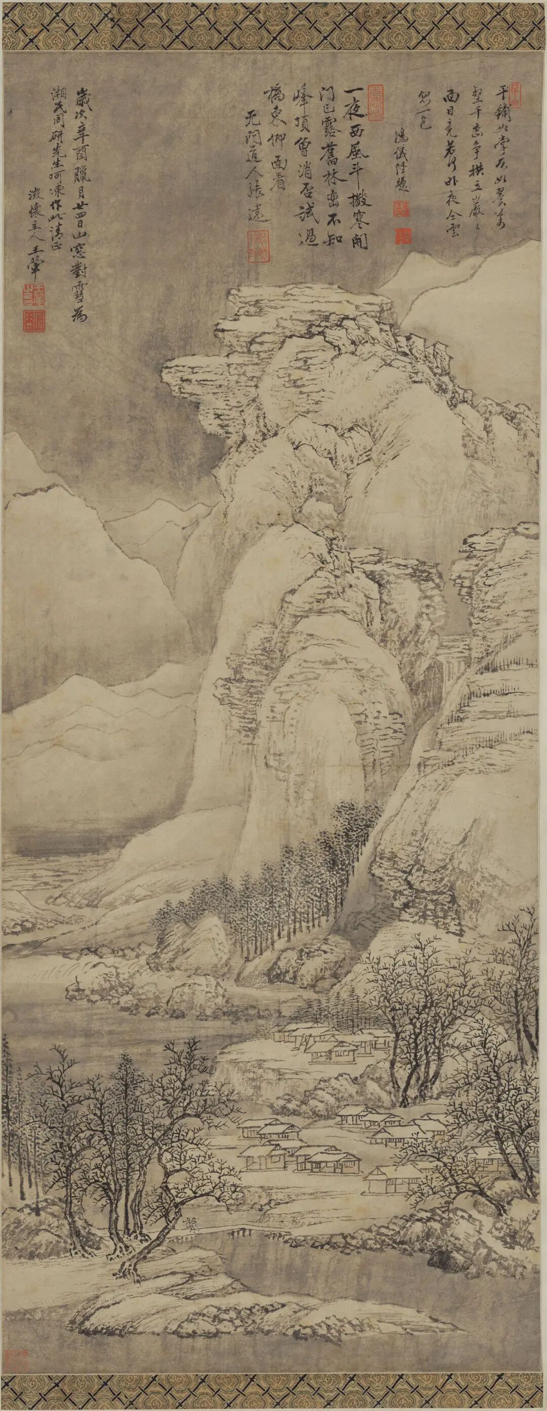 明代的雪景山水画与唐宋元相比较为平淡,不过这一时间段中,戴进、吴伟、唐寅、文征明、谢时臣、文嘉、文伯仁、钱毅、蓝瑛、宋旭、等等名家都有雪景图传世。