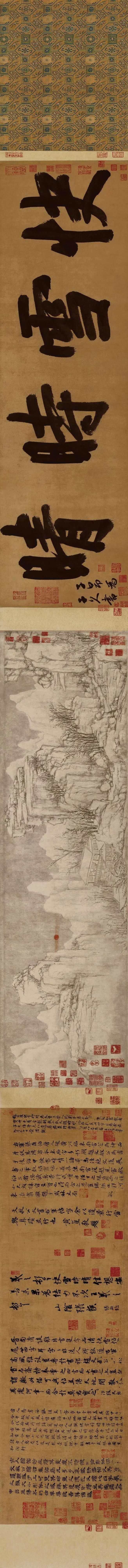 元四家中有雪景山水画传世的只有黄公望,从中我们可以看出元人雪景山水画风格的变化。《快雪时晴图》为赵孟頫行书“快雪时晴”四字,黄公望、徐贲各画一段山水画与之合璧。