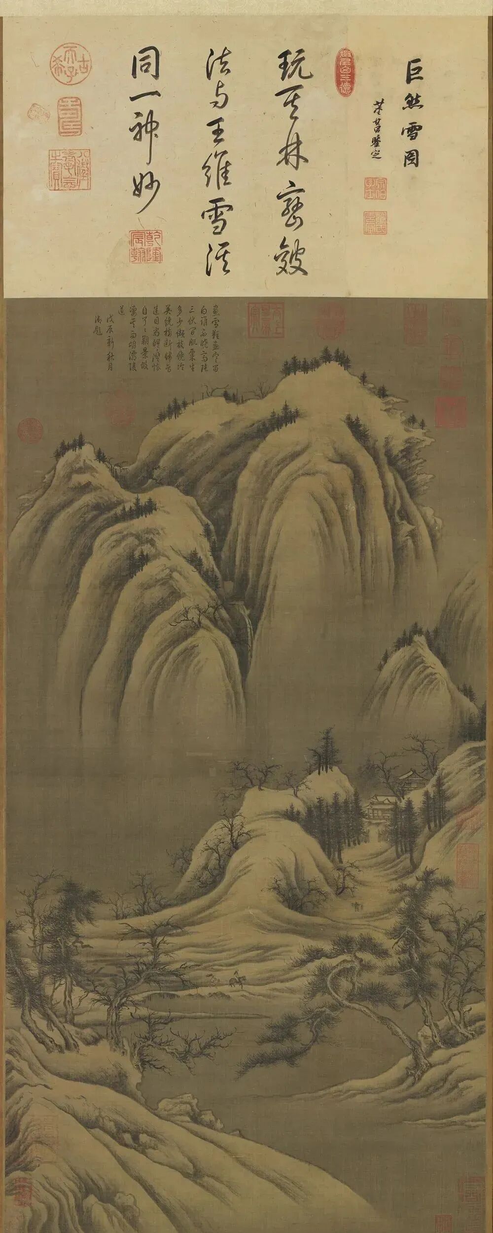 文人画鼻祖王维也是雪景绘画大师,在宣和画谱中收录了多幅王维以雪景为题材的绘画,其中绝品当属《雪溪图》和《雪山行旅图》,但是真迹也并未留存下来,现在所传的王维雪景图多为后人临仿。