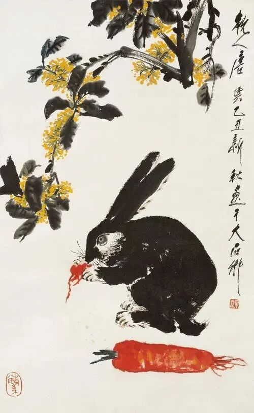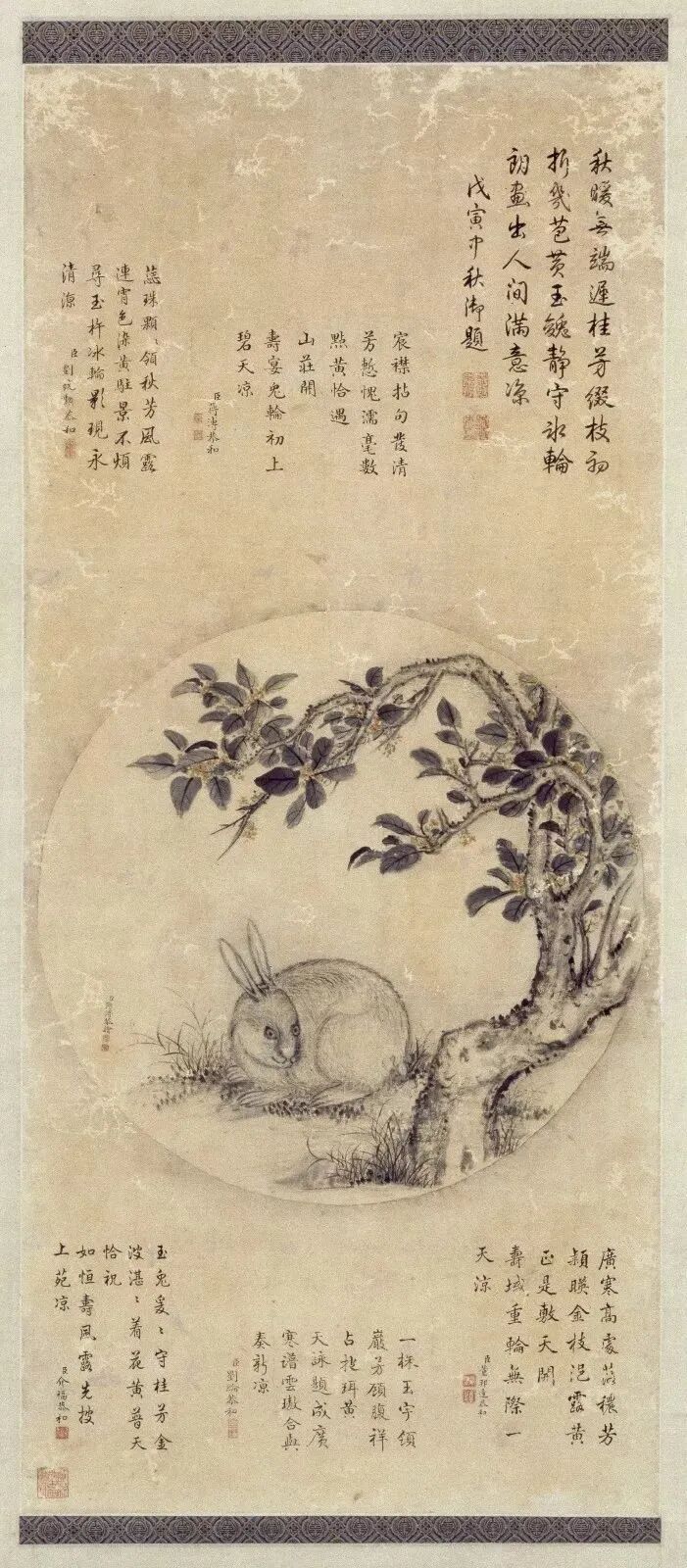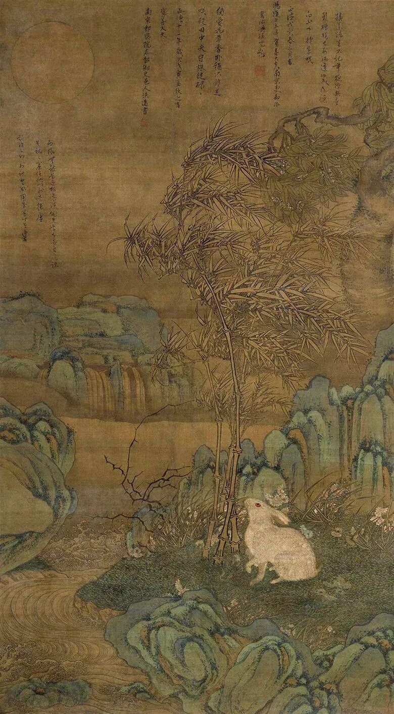 兔子在民间象征着吉祥、智慧和谨慎,“玉兔呈祥”之说一直深入人心。“ 玉兔呈祥”起源于“遇兔呈祥”。北宋 崔白 《双喜图》 绢本设色 台北故宫博物院藏明 徐霖 菊石野兔图 绢本设色 纵160×52cm 故宫博物院藏清 沈铨 雪中游兔图 立轴 绢本淡设色 230.5×131.7厘米 日本泉屋博古馆藏来源:微水墨艺术▲【西泠印社】玉兔满堂癸卯兔生肖铜印章×中国邮政限量纪念册