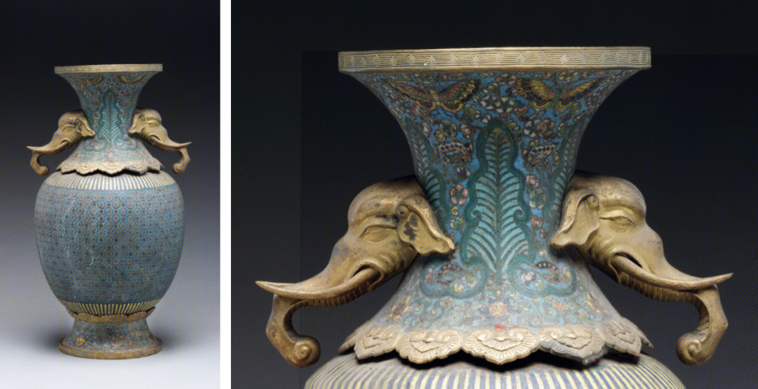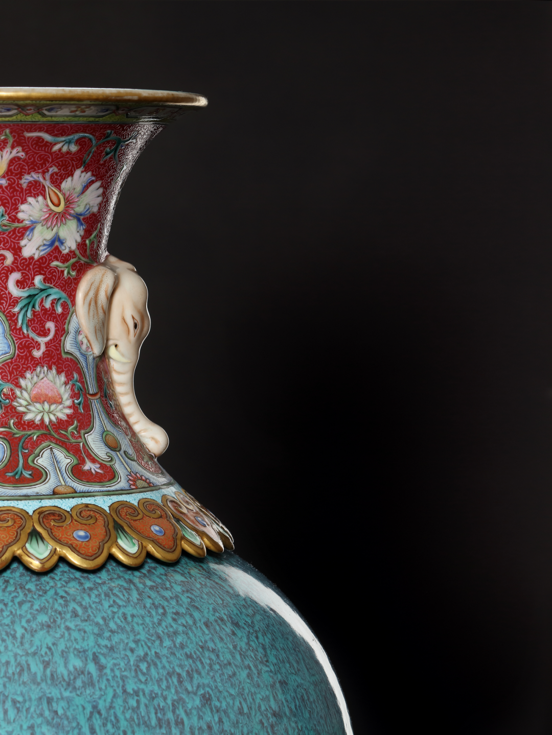 清中期 掐丝珐琅锦纹象耳瓶 局部