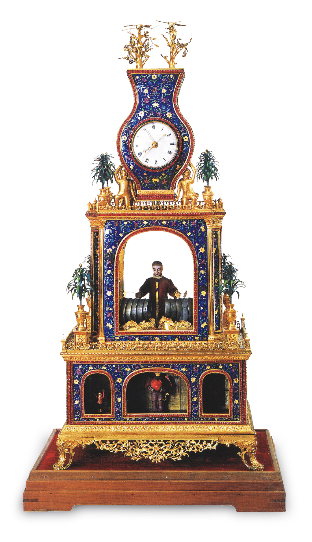 清乾隆 铜镀金珐琅楼攀杠人钟(广州)