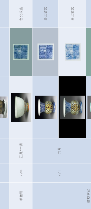 最为稀有绝妙处,乃其腹部可轻轻旋转。存世之转心瓶中,多满布洋彩、粉彩装饰,以单色釉相配,存世不过几件,可谓凤毛麟角。一例见故宫博物院藏清乾隆仿哥釉洋彩转心瓶,琮式瓶周身饰仿哥釉,口部及内胆以洋彩装饰;为达到乾隆皇帝对新样瓷器的要求,唐英将动感融入静态的瓷器,此件瓶便是这一过程的完美见证。