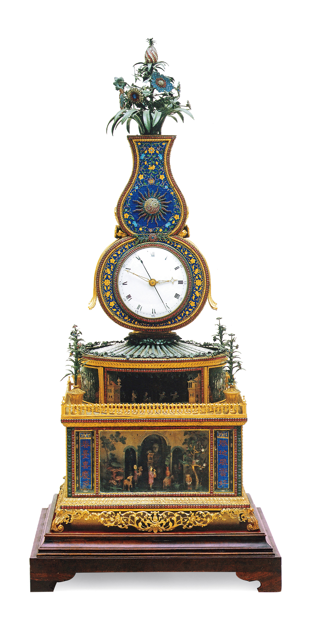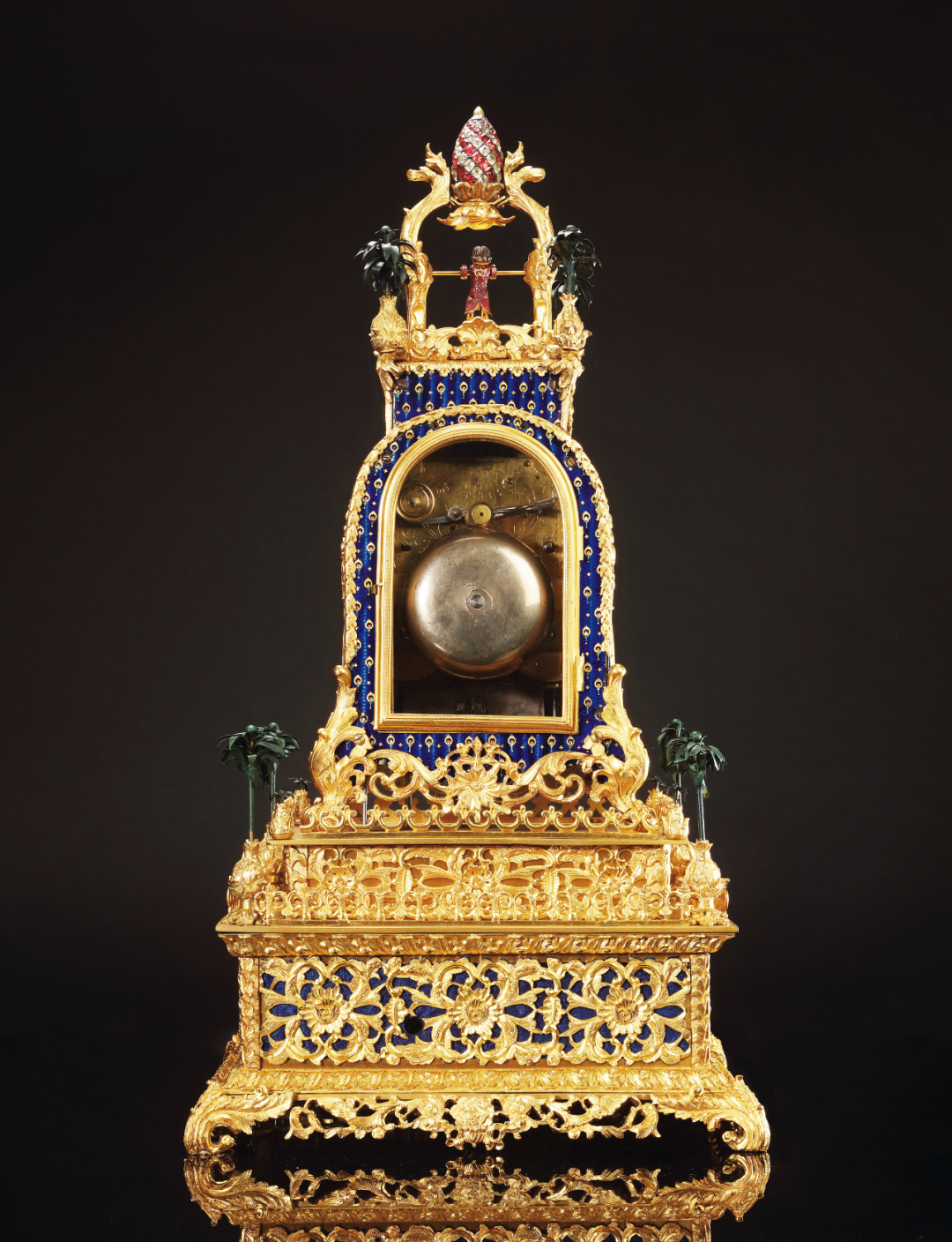 清乾隆 铜镀金广珐琅羽人献寿钟(广州)