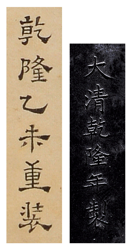 「乾隆乙未年重装」(漆盒)、「大清乾隆年制」(御墨)款