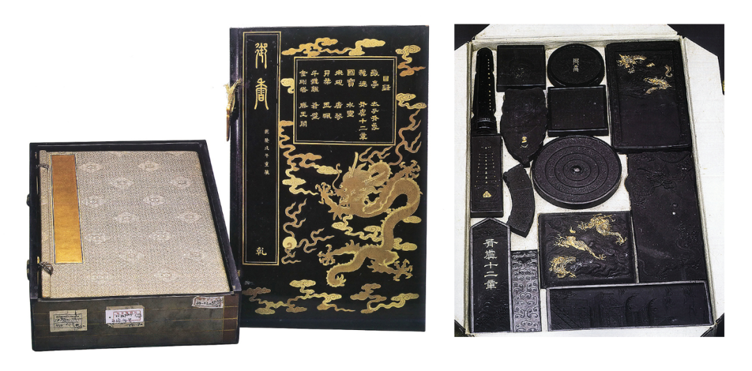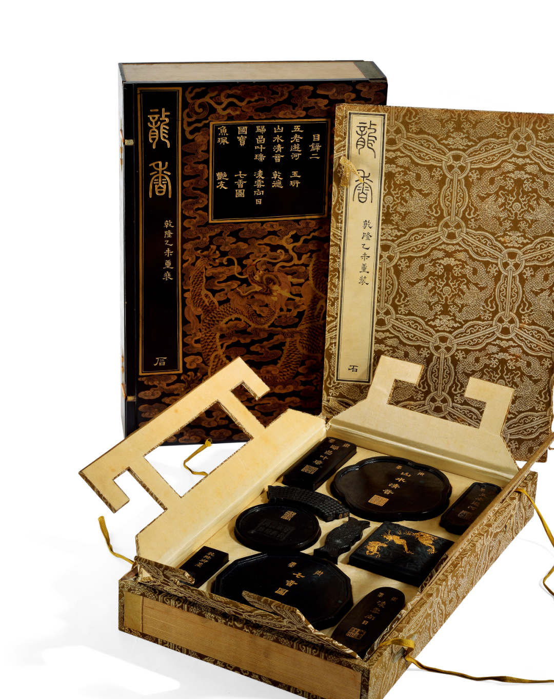 “龙香御墨”以八音命名,分别为“匏、土、革、木、金、石、丝、竹”。现藏于台北故宫的“龙香御墨”,为上函的“匏、土、革、木”四匣,本品为下函中的“石”匣,是目前所知唯一流通于世的一匣,与之原为一套。