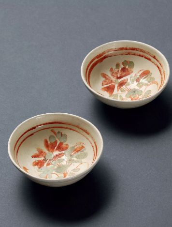 明 怀仁窑红绿彩小盏 (一对)