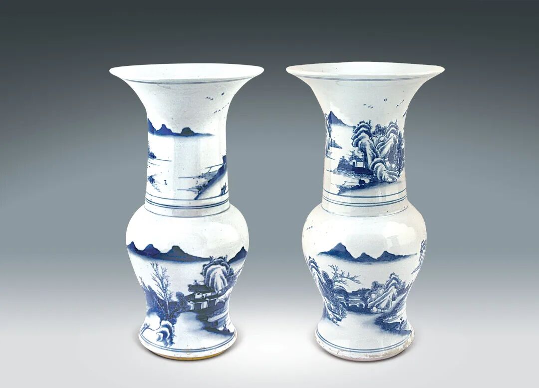 247 清 青花山水紋花觚一對