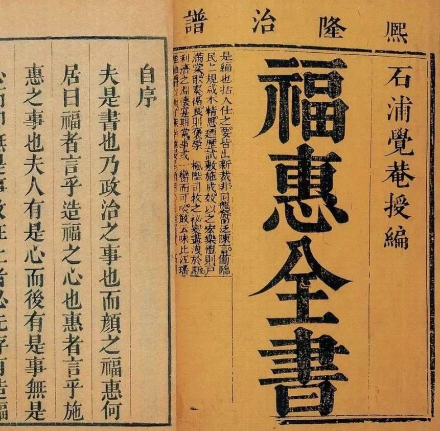 关于《福惠全书》的意义,诸刻本内封有云:“是编也,括入仕之要皆出新裁,非同袭腐泛陈言;备临民之规咸本精思,乃历试敷施成效。以之宏乐恺则户满棠歌,奏循良则褒崇枫陛。司牧之秘窔,尽泄于斯;利济之渊怀,实期当事。或一脔而可啖,敢云味比江瑶;唯细嚼以弥甘,庶幸滋长翠颗。”这几行字对《福惠全书》给予了极高赞誉,评价是中肯的,但也体现了作者自己或子孙后代在编刻是集之际所流露出的自信和自负之情。《福惠全书》一经出版,就形成了很大影响,或曰该书“坊间盛行,初仕者奉为金针”,“凡初仕者几于人置一编”(原因是“黄给事本以知县行取,其政迹必有可观”),或曰“此书易购,各处书肆皆有”,“虽后来政令屡变,然六鸿此书终有不可废者也”。